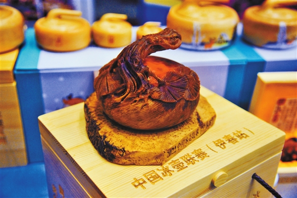 此次,美江木藝有限責任公司共展出了100余件產(chǎn)品,其中,最引人注目的瑞虎冰壺,由美江木藝公司為2022中國冰壺聯(lián)賽(伊春站)主題創(chuàng)作,最大直徑1.8米,總高度1.6米。主體壺身采用2022個小興安嶺山核桃做原料,壺蓋部分采用小興安嶺珍貴樹種紅松。作品構(gòu)思巧妙、用材獨特,既契合本次冰壺聯(lián)賽內(nèi)容,又充分體現(xiàn)了林都伊春、冰壺之鄉(xiāng)的地域特征。構(gòu)成壺身的2022個山核桃,寓意著2022年河山錦繡的小興安嶺,構(gòu)成壺蓋的興安紅松,蘊含著華夏文明“鴻運當頭”的美好期許。此藝術(shù)品既體現(xiàn)伊春的森林文化藝術(shù)與競技體育相融合的發(fā)展理念,也展現(xiàn)了伊春的冰雪經(jīng)濟和木藝創(chuàng)意設(shè)計產(chǎn)業(yè)的發(fā)展成果。