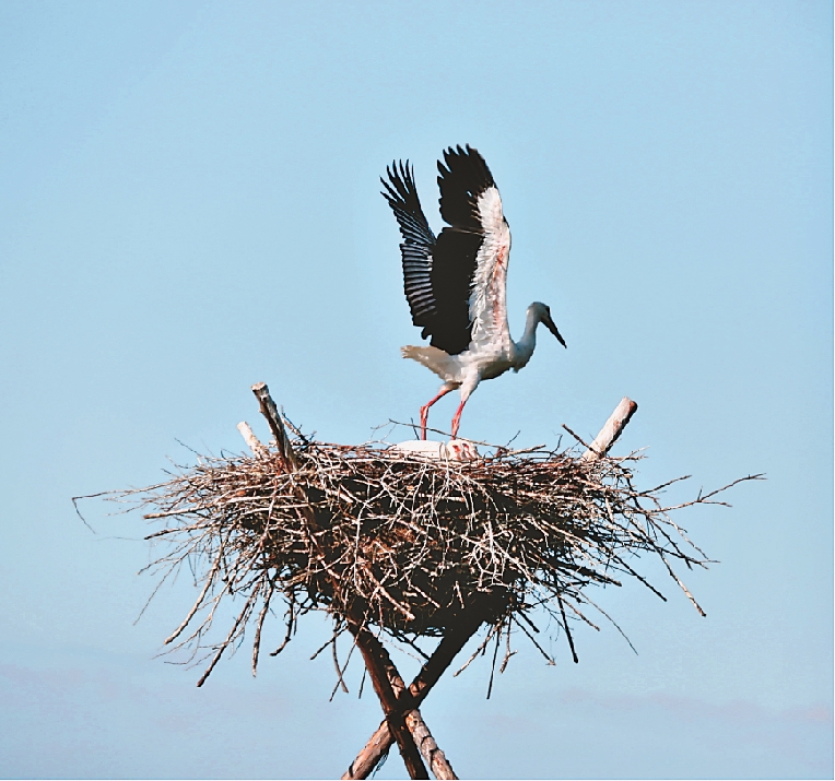 保護(hù)區(qū)管理局保護(hù)科負(fù)責(zé)人欒新介紹,30年的時(shí)間里,人工招引巢結(jié)構(gòu)由原來的單一人工樹巢更新優(yōu)化到鐵質(zhì)三腳架招引巢,具有牢固性強(qiáng)、耐腐爛、利用年限久、招引成功率更高的特點(diǎn)。截至目前,保護(hù)區(qū)已為東方白鸛搭建了人工招引巢389個(gè)。
