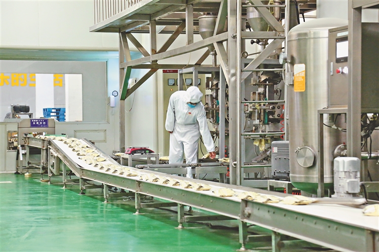 農(nóng)墾龍王食品公司車間的生產(chǎn)線正開(kāi)足馬力運(yùn)轉(zhuǎn)。本報(bào)記者 張翎攝