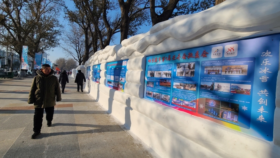 在斯大林公園沿線,記者看到一面展示全省冰雪體育成果的雪墻。雪墻上布置了展板,展示了包含第九屆亞冬會籌備情況、我省冰雪全民健身成果、省內(nèi)各地市歷年來冰雪運動及賽事發(fā)展情況等內(nèi)容。