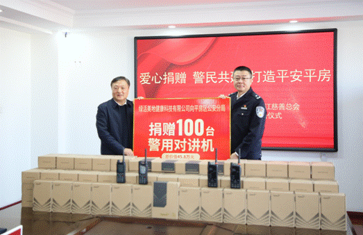 黑龍江經(jīng)濟(jì)網(wǎng)訊(朱麗穎 記者崔冰)2月5日,黑龍江省誠信建設(shè)促進(jìn)會副會長單位——綠活美地健康科技有限公司以實際行動踐行社會責(zé)任,在哈爾濱市公安局平房分局(以下簡稱平房分局)成功舉辦"愛心捐贈,警民共建,打造平安平房”公益捐贈活動。此次活動,綠活美地公司向平房分局捐贈100臺警用對講機(jī),價值45.8萬元,助力警用裝備現(xiàn)代化升級。