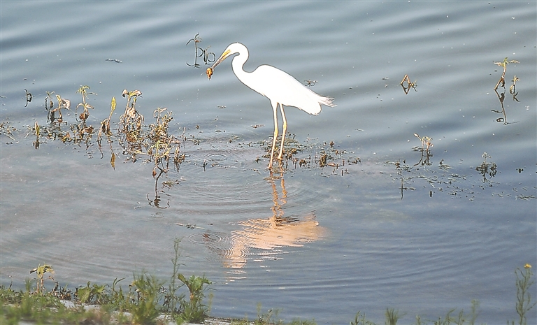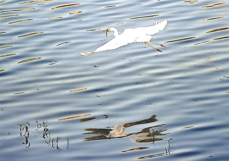 近日,哈爾濱市道里區(qū)友誼西路附近的何家溝畔,一只白鷺多次飛到這里休憩、捕魚(yú)。