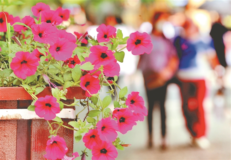 13日,哈爾濱市道里區(qū)中央大街上,行人從五彩繽紛的花卉旁走過。進(jìn)入夏季,來哈爾濱避暑游玩的游客不斷增多,為給游客打造一個(gè)舒適美麗的旅游環(huán)境,中央大街上種植了三色堇、金魚草、矮牽牛、四季海棠等多種花卉。這些鮮花姹紫嫣紅、爭(zhēng)奇斗艷,將整條街道裝點(diǎn)得十分靚麗。
