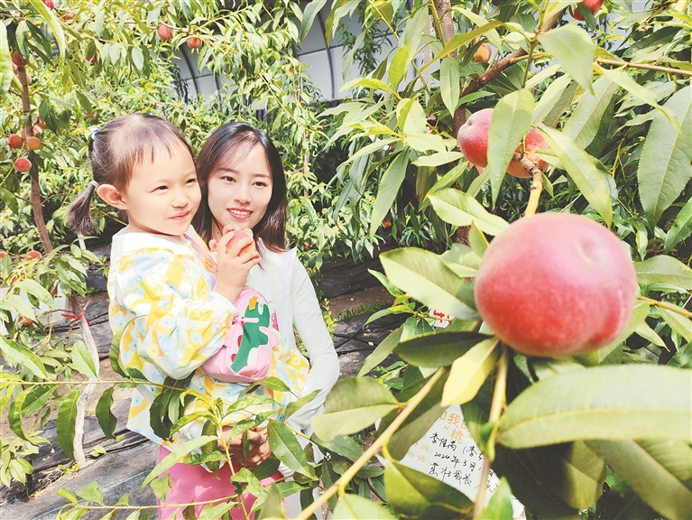 待采摘的桃子。錢(qián)磊攝