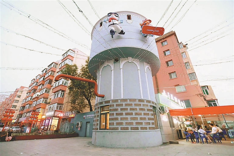 據(jù)介紹,香坊區(qū)通過對“水樓子”進行微更新、微改造,融入亞冬會吉祥物標(biāo)志,形成了以“水樓子”為地標(biāo),輻射聯(lián)動健康路、大慶副路、三大動力路上知名小吃為輔助支撐的網(wǎng)紅打卡新景觀,營造了喜迎亞冬會的濃厚氛圍。