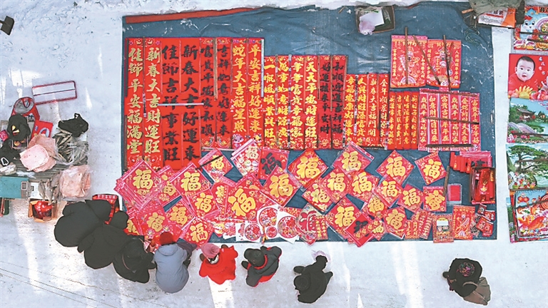 小年來臨,海林市橫道河子大集熱熱鬧鬧。小鎮(zhèn)居民在各個攤床前采購各式各樣的年貨,挑春聯(lián),選福字,買干調(diào)凍貨熟食……小街上人流熙熙攘攘,年味十足。
