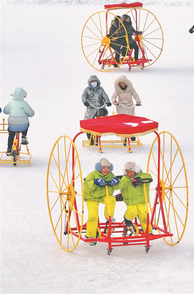 1月29日,大年初一,哈爾濱太陽島雪博會園區(qū),游人如織。孩子們在家長的帶領下,坐雪圈、騎冰上自行車,玩冰戲雪,歡樂融融。省博物館展廳內,懸掛了紅燈籠、紅條幅,許多市民、游客在參觀學習,打卡拍照,體驗傳統(tǒng)民俗。