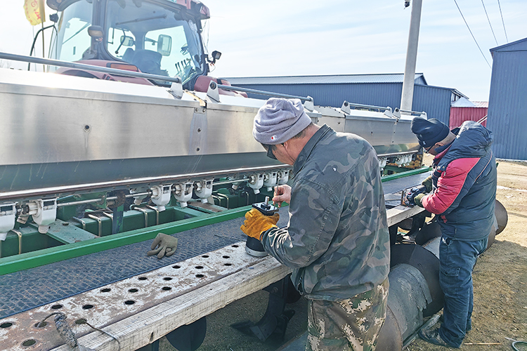 在第二管理區(qū),施肥機(jī)的改裝成效顯著。有機(jī)戶們?cè)谵r(nóng)業(yè)技術(shù)人員的悉心指導(dǎo)下,有條不紊地對(duì)施肥機(jī)進(jìn)行改裝。