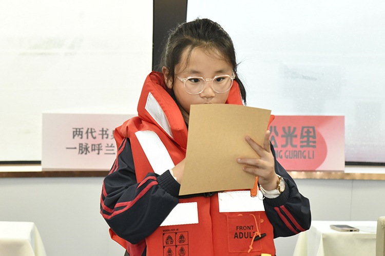活動在《呼蘭河傳》朗讀片段的音曲播放中拉開帷幕。30余位文學愛好者與青少年閉眸冥想,在江水潺潺聲中走進蕭紅筆下的呼蘭河世界。15組家庭依次分享對蕭紅及其作品的認知,動情朗讀《呼蘭河傳》經(jīng)典段落——當“嚴冬一封鎖了大地的時候”等文字在江面上回蕩,百年前的市井煙火與眼前的江河風光悄然重疊。