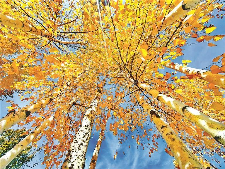 12日,哈爾濱市道里區(qū)麗江路附近的松花江畔,一小片白樺林吸引人們駐足觀(guān)賞、拍照。深秋的白樺樹(shù),樹(shù)干筆直高聳,樹(shù)皮潔白如紙。枝頭的葉子已經(jīng)由綠色變成了金黃色,在陽(yáng)光的照耀下,色彩濃重,景色迷人。本報(bào)記者 蘇強(qiáng)攝