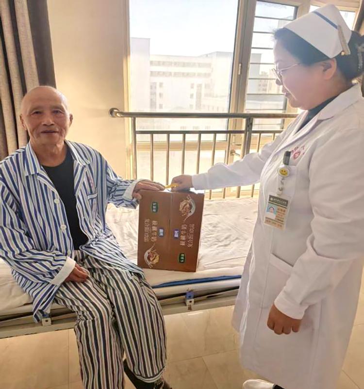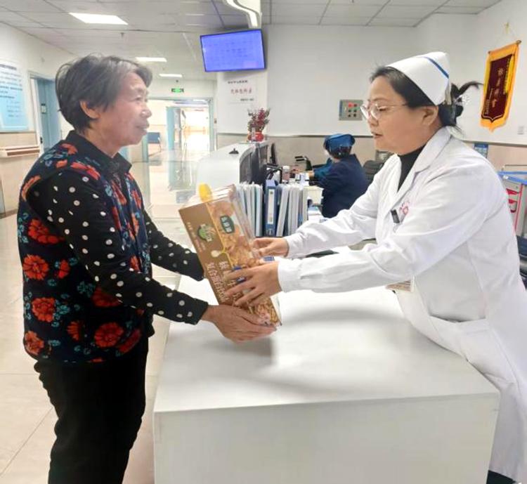 禮品雖小,情意濃重。開展活動期間,醫(yī)護人員們帶著精心準備的小禮品,走進每一位60歲以上老年患者的病房。這些小禮品雖然價格并不昂貴,但卻飽含著對患者的深深祝福。柔軟舒適的保暖襪,為患者在漸冷的霜降時節(jié)增添一份溫暖;營養(yǎng)豐富的滋補品,助力患者增強身體抵抗力;寓意吉祥的平安符,寄托著對患者早日康復的美好期許。當醫(yī)護人員將一份份小禮品送到患者手中時,患者們的臉上都洋溢著驚喜與感動的笑容,紛紛對科室的貼心關(guān)懷表示感謝?;颊邉⒁碳拥卣f:“在這個特殊的節(jié)日里,收到你們送的禮物,心里特別溫暖”。