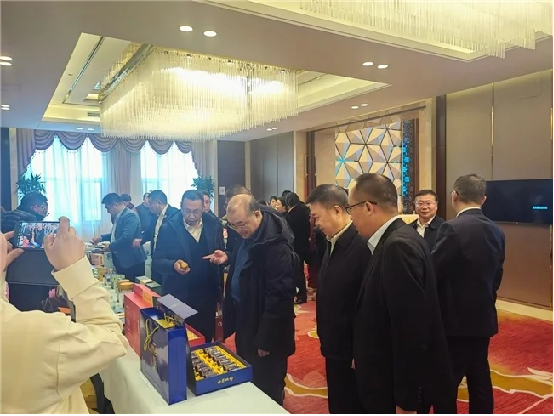 恩施州高新投資發(fā)展集團(tuán)有限公司董事長胡銘現(xiàn)場推介與硒資源研究與生物應(yīng)用湖北省重點(diǎn)實(shí)驗(yàn)室聯(lián)合開發(fā)的特色硒精深加工產(chǎn)品。