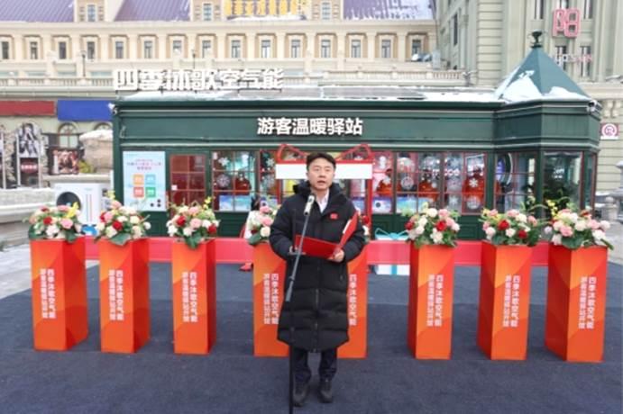 共青團哈爾濱市委副書記徐翎致辭時指出,哈爾濱以“世界冰雪旅游卓越城市”之姿驚艷全球,這一火熱盛況背后,也讓四季沐歌集團連續(xù)三年傾力打造游客溫暖驛站的堅守與付出,收獲了高度肯定,企業(yè)以科技暖意驅(qū)散凜冬嚴寒、用清潔能源護航八方游客、以“雙碳”使命點亮城市溫度的責任擔當更贏得社會廣泛贊許。她表示,團市委將以游客溫暖驛站為紐帶,廣泛匯聚青春動能和社會力量,為驛站建設(shè)添磚加瓦,也真誠呼吁各界持續(xù)關(guān)注溫暖驛站發(fā)展、支持哈爾濱青年發(fā)展型城市建設(shè),攜手為冰城高質(zhì)量振興注入青春動能。