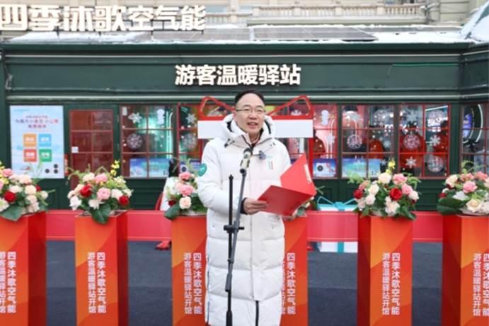 四季沐歌集團總裁李駿在儀式講話中指出:“科技助力美好生活”絕非一句空洞口號,而是集團深耕綠色發(fā)展、踐行社會責任的核心內(nèi)核與行動綱領(lǐng),依托前沿低碳技術(shù)打造的“溫暖驛站”應(yīng)用場景,以綠色賦能城市的生動實踐贏得了廣大游客的深度認可;面向未來,驛站將完成從便民服務(wù)場景到低碳科普實踐基地的價值進階,這既是企業(yè)低碳理念的具象化延伸,更是以場景為媒、以實踐為橋播撒綠色發(fā)展種子的責任踐行,四季沐歌始終堅信冰雪經(jīng)濟的高質(zhì)量發(fā)展離不開綠色低碳的底色,集團將持續(xù)以技術(shù)創(chuàng)新助力哈爾濱冰雪經(jīng)濟與綠色發(fā)展深度融合,讓人與自然和諧共生的理念在這座冰雪之城中落地生根,向五湖四海傳遞延伸。