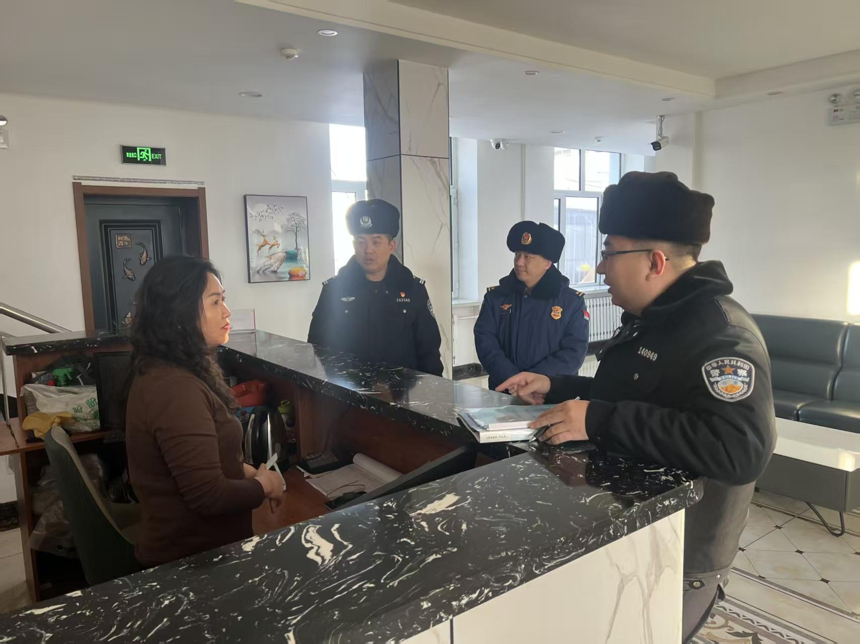黑龍江經濟網訊(李金娜)為進一步強化轄區(qū)住宿行業(yè)安全管理,及時消除潛在安全隱患,近日,大興安嶺松嶺區(qū)公安局治安大隊聯(lián)合小揚氣鎮(zhèn)派出所及區(qū)消防救援大隊,對轄區(qū)內賓館、旅店、民宿展開全面安全檢查。