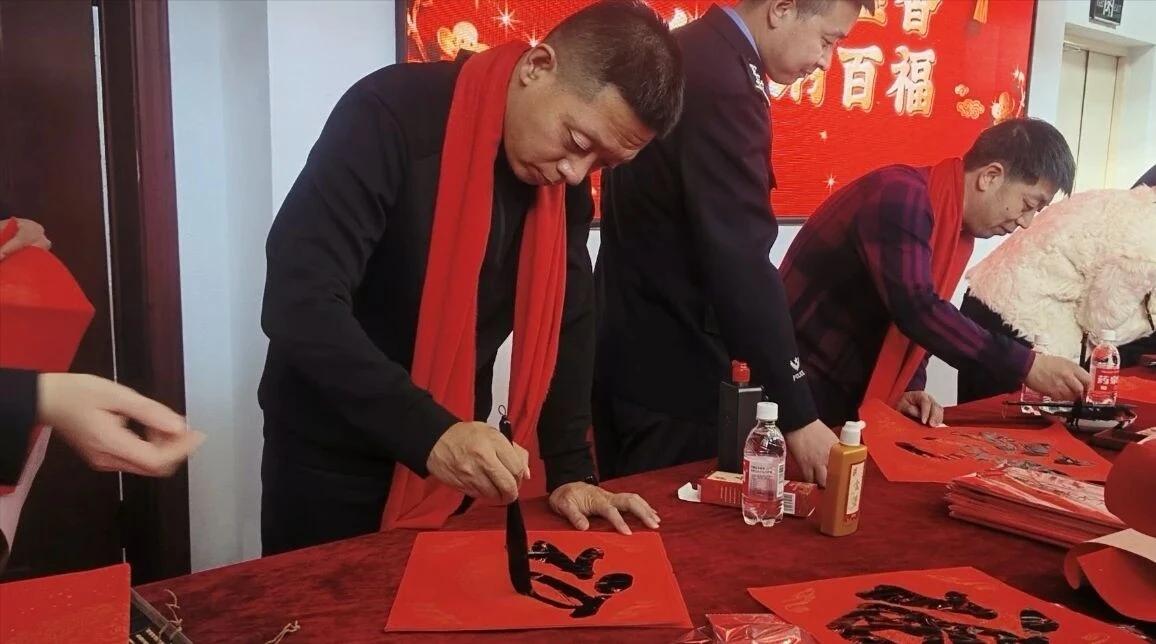 局政委王秀東出席活動(dòng)儀式并致辭,政工室主任劉鐵主持活動(dòng),市書法家協(xié)會名家與該局書法愛好者齊聚一堂,為堅(jiān)守崗位的民輔警送上新春祝福與文化滋養(yǎng)。活動(dòng)現(xiàn)場暖意融融、墨香四溢。大紅宣紙整齊鋪展,筆墨硯臺依次排開,書法家們凝神聚力、揮毫潑墨,筆鋒或遒勁有力、或溫婉流暢。一副副寓意深遠(yuǎn)的春聯(lián)躍然紙上,一個(gè)個(gè)飽滿圓潤的“?!弊殖休d著美好期許,既彰顯了中華傳統(tǒng)文化的魅力,又融入了公安工作的使命擔(dān)當(dāng)。